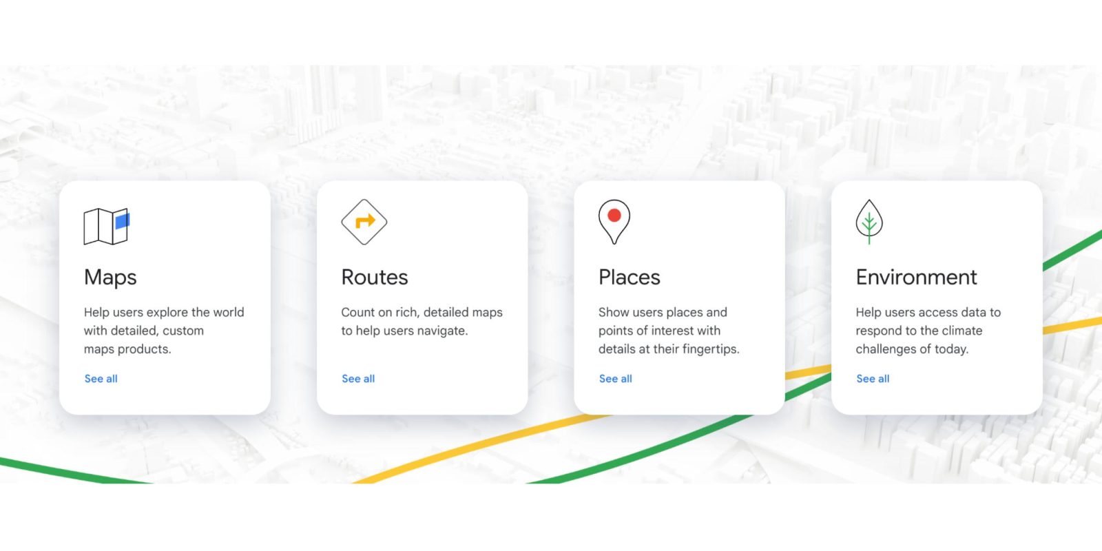 La Google Maps Platform est la façon dont les tiers peuvent développer des applications avec Google Maps. Elle est actuellement utilisée par plus de 10 millions de sites Web et applications.