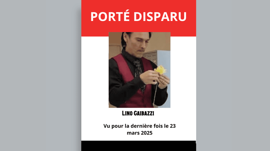 - Jeudi 3 avril 2025 : Lino Gaibazzi est retrouvé vivant et en bonne santé dans l’ouest de la France, puis pris en charge par les services médicaux.